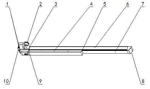 1、鎖扣 2、鎖芯 3、鎖頭機構 4、推桿 5、推桿機構 6、鎖架 7、鎖架蓋板 8、鎖架堵頭 9、鎖頭蓋 10、鎖舌11、安裝附件